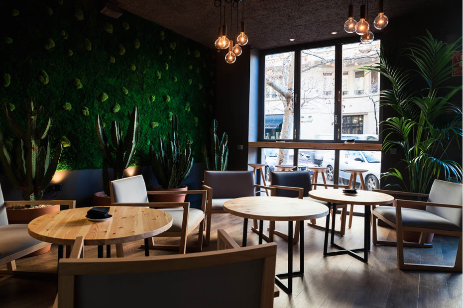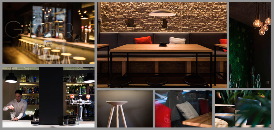 Un espacio cálido y acogedor, que invita a conversar y brindar... Una terraza cubierta, en la que la naturaleza, representada por un jardín vertical, convive con maderas naturales y suaves tapizados. Se consigue un ambiente sofisticado en el que las comidas y cenas son batallas de palillos para no quedarse sin probar las delicias japonesas, después probar cualquiera de sus exquisitos y esmerados cócteles con un servicio impecable. La barra, diseñada para que el trabajo del personal de Ginger Fizz resulte cómodo, forma parte del ambiente, es un elemento decorativo más... Un escaparate de bebidas que nos muestran todas las posibilidades para terminar el día de forma especial. Después de todo esto ¿a quién no le apetece tomar un Cosmopolitan esta noche?